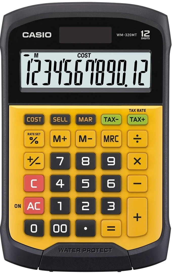 CASIO KALKULATOR BIUROWY WODOODPORNY WM-320MT-S, 12-cyfrowy wyświetlacz, Wyjmowana klawiatura, 108,5x168,5, Poziom wodoszczelności i odporności na brud: IP54
